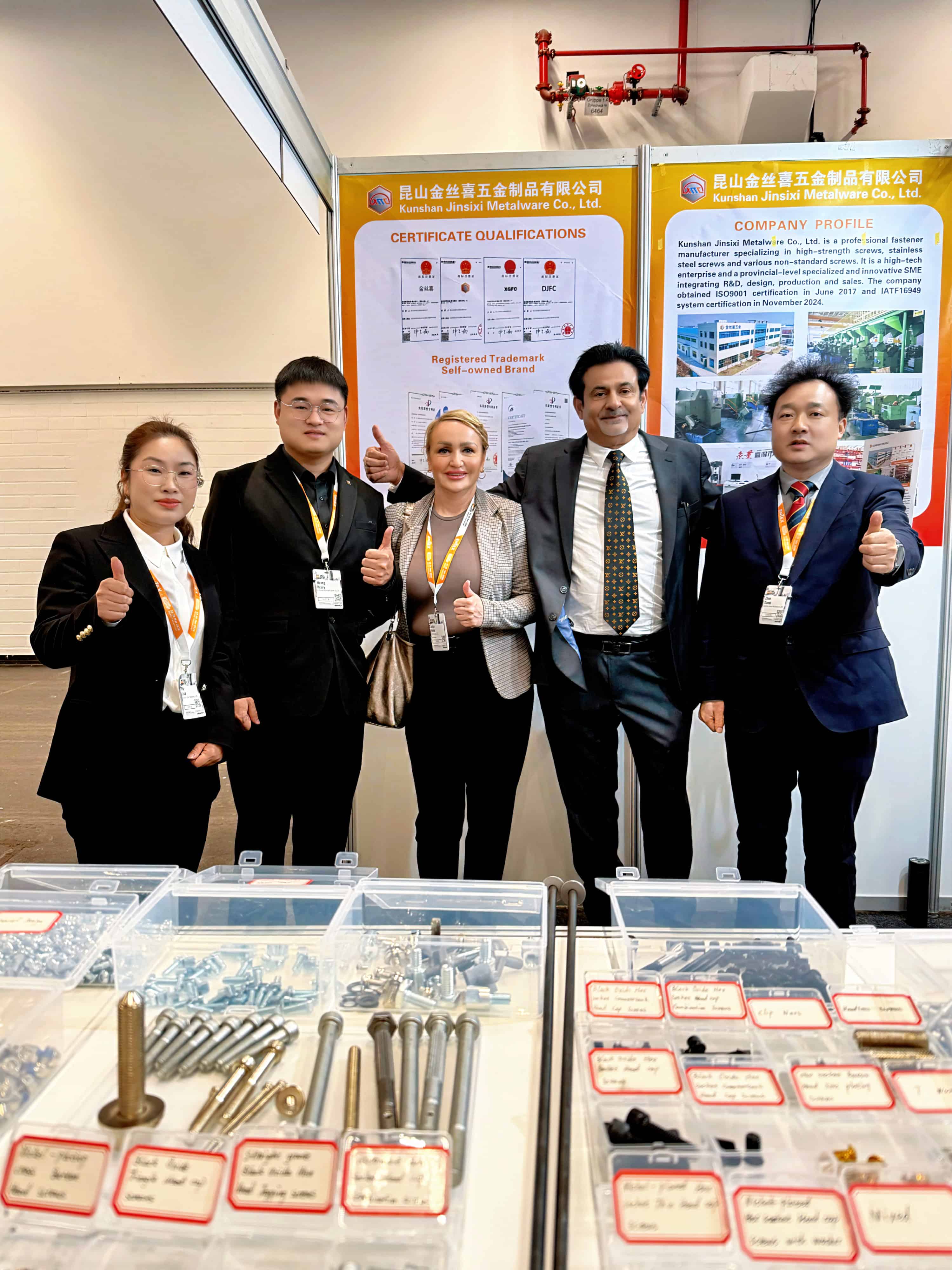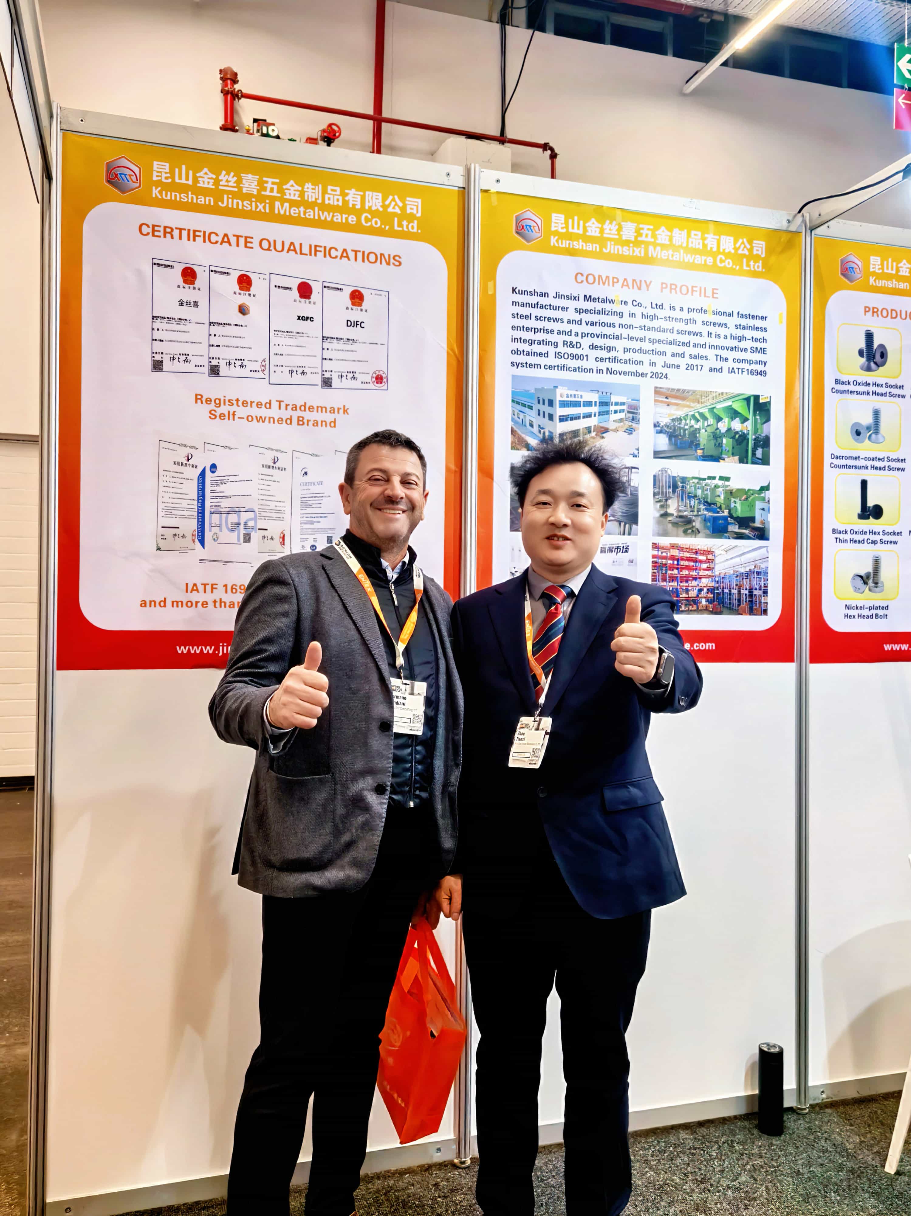 Για να επιδείξει πλήρως τα δυνατά του σημεία,Jinsixiδημιούργησε ένα προσεκτικά σχεδιασμένο περίπτερο, αναδεικνύοντας τη γκάμα τουεξάγωνη υποδοχήκαιεξάγωνο κεφάλιπροϊόντα που διαθέτουν διάφορες διεργασίες επιφανειακής επεξεργασίας, όπως μαύρο οξείδιο, επινικελωμένο, ψευδάργυρο και επικαλυμμένο με Dacromet. Αυτά τα προϊόντα συμμορφώνονται με τα κύρια πρότυπα, όπως τα GB, DIN, ANSI, JIS και ISO, και είναι κατασκευασμένα από υλικά όπως ανοξείδωτος χάλυβας, χάλυβας μέσης περιεκτικότητας σε άνθρακα και κράμα χάλυβα. Όλα τα προϊόντα τηρούν αυστηρά τα συστήματα διαχείρισης ποιότητας ISO 9001 και IATF 16949, διασφαλίζοντας ότι κάθε βίδα και μπουλόνι παρέχει αξιόπιστη και σταθερή μηχανική απόδοση.